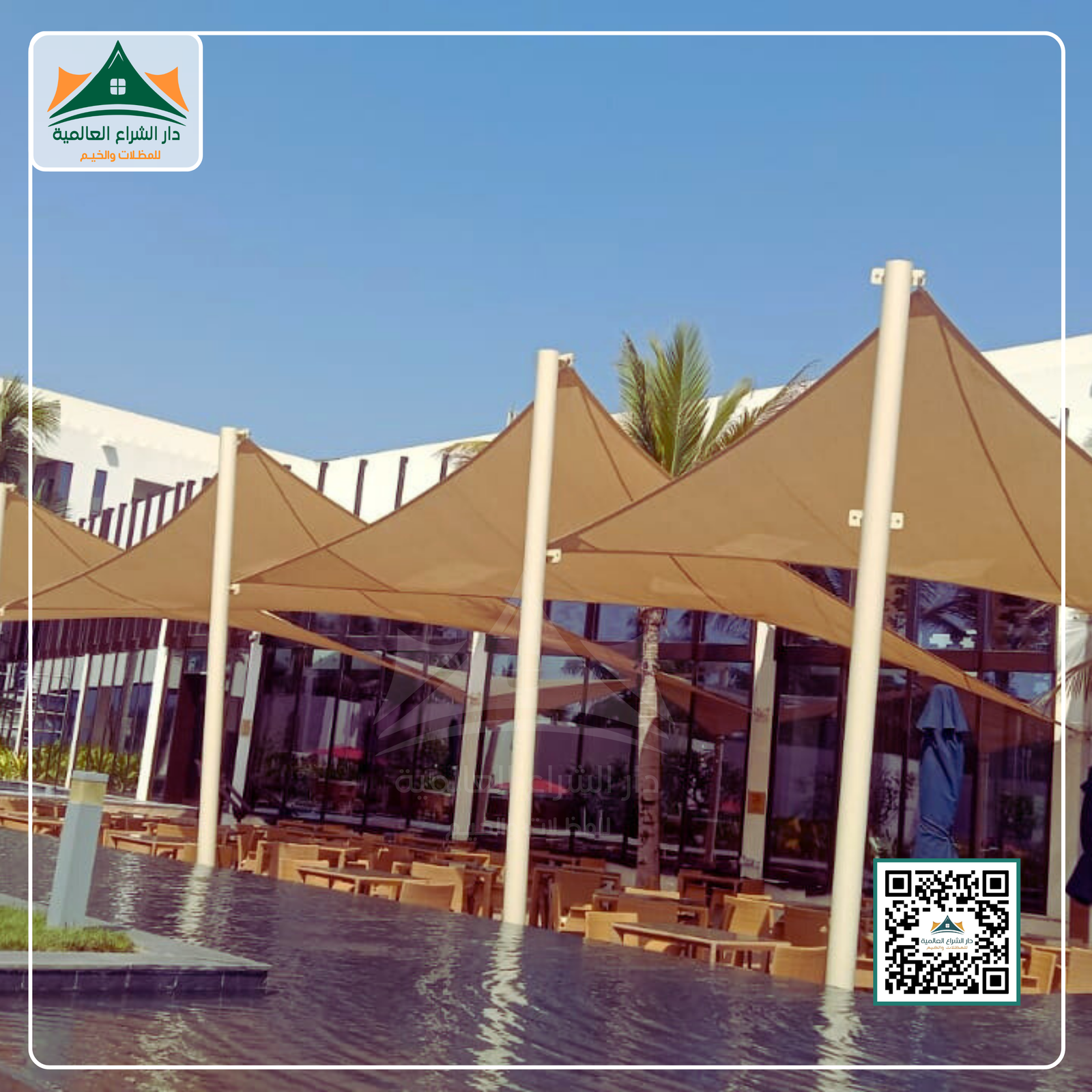 ✔ التغطية: قماش PVC عالي الجودة أو HDPE المخصص للمظلات المشدودة